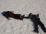 マキノ高原へ(平成22年2月14日)今日は家族で滋賀県のマキノ高原に行ってきました! 子供たちも、そしてママも初めての雪遊びです(笑) 朝9時ごろ家を出発して途中、子供たちのズボンとおーちゃんの 長靴を購入。 マックのドライブスルーで昼ごはんを食べた後、 12時ごろに到着しました。 結構な人で、一応スキー場みたいなんだけどすごくなだらかな 斜面(と言えるのか)なので子供が沢山。 おーちゃんもきーくんも すごく嬉しそうではしゃぎまくり♪ ママも実はこんな積もっている雪は初めてだったので 本当になんか不思議な感じがしてました。 そりで斜面をすべったり、雪だるまを作ったり、雪合戦をしたり。 いい表情をしていた 二人です。 一時間半ほど遊んだら、雪が長靴に入って冷たくなった〜とおーちゃんがゴネだし・・・・。 (きーくんも靴の中はぐちょぐちょだったのに、きーくんは遊び倒していたよ・・・) そのまま、そこにあった温水プールへ。 自分たちはプールに入っているのに、ガラスの外 ではたくさんの人が雪遊びをしているという、妙な光景でした〜。 きーくんは「今日は幸せやわ〜♪」としきりに言ってたよ(笑・・・雪遊びとプールがいっぺん に出来たのでらしいです) 「帰ったら二度とこーへんのやろ」と今度は帰りたくないと ごねていたおーちゃんです。 また行きたいなぁ☆ |