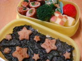 今日のお弁当/小学校へ(平成22年2月18日)*今日のお弁当* ・ ブーツキャラシート(のり、チーズ、ハム) ・ ふわふわからあげ(鶏ミンチ、豆腐、ほうれん草) ・ きんぴらごぼう ・ ブロッコリー、プチトマト、いちご 今日のお弁当は、きーくんの大好きなテレビ「DORAと一緒に大冒険」のブーツです。 きーくんは見るなり「わぁ〜!今日のなんかブーツにみてる〜(にてる)♪」と言いました(笑) やっぱり白黒だと微妙なのね〜(汗) 今日はバレーの日だったのですが、3月頭にある最後の懇談会の文書作成のために 小学校へ。4月の年度初めの役員選挙の段取りも話を聞くようになっていたのですが、 これも、懇談会の日にある学級委員会の時に、副会長さんが委員さんに向けて話を してくれることになったので、今日はなくなり思ってより早く終わることができた〜。 といっても12時過ぎだけど。 |