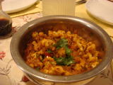 カレークッキング(平成22年5月11日)きーくんが水疱瘡になったので、今日のクッキングは 行けない〜(TT)と電話をしたのですが、教えてくれるジョーの ところも水疱瘡だったらしく、お互い熱がなくて、元気が有り 余ってるのだったら連れてきて〜!と言ってもらい、お言葉 に甘えてお友達の家にお邪魔してきました。総勢5人+ 子供2人。 ママは一度、マンツーマンでカレーを教えてもらったことがあるの ですが、今回は違ったスパイスも入って、少し作り方が違うものでした。カリフラワーの カレー。 絶品でした♪ きーくんもAくんと遊べて楽しそうでした(^^) Aくんの口から 日本語がジャンジャン出てきていたので、みんな感心しきりだったよ〜! |