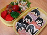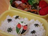 ソフトバレー大会/今日のお弁当(平成22年5月25日) とても久しぶりの日記〜(汗) これからさかのぼってぼちぼち書いていきます。 今日は幼稚園のこひつじ会主催のソフトバレー大会の日でした。 ママたちが試合をするのを園児たちが応援してくれます。 バレー部員なので、いろいろお手伝いをしつつ。 今年は見ていても楽しい大会だったなぁというのが感想♪ その上時間内に終わったし。 きーくんも一生懸命応援していてかわいかったです(^^) 朝きーくんを送るとき、いつもは玄関までは入らないのですが、今日は昨日お友達の体操服 を持って帰ってきたうえ、その子の制服ズボンまではいて帰ってきていたので(笑・・・今 きーくんの口から一番名前が出てきているお友達です♪)その旨を先生に伝えました。 その時きーくんが「先生〜!きょうな〜、仮面ライダーダブルのお弁当やねん♪」と嬉しげに 報告していたよ(笑) * 今日のお弁当 * ・ 仮面ライダーダブルサイクロンジョーカー (お弁当シート緑、カニカマ、のり、チーズ) ・ からあげ ・ 小松菜とニンジンとじゃこの炒め物 ・ ブロッコリー、プチトマト、いちご、ふりかけ |