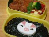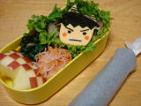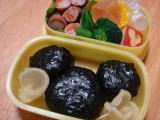 ![]() 今日のお弁当(平成23年2月3日) * 今日のお弁当 * ・ カッパ巻き(寿司飯、きゅうり、のり) ・ 鬼さんキャラシート (チェダーチーズ、のり、にんじん) ・ しょうが焼き(? 忘れた・・・) ・ 紅白なます(にんじん、だいこん、ごま) ・ ほうれん草とひじきの和え物 ・ りんご 今日は節分なので、恵方巻きにちなんで海苔巻きにしてみました。寿司ご飯が大好き なきーくんは喜んでくれたよ♪ 長いままクッキングシートに巻いて持たせました。 幼稚園 でもみんなにおもしろがってもらえたようです(笑) きーくん、「静かに食べられへん かった・・・」と言いながら帰ってきました(汗) 今日はパパがお仕事で早く帰ってこれなかったので、家での豆まきはおーちゃんがオニ 役をしてくれました。 今年はお面をスーパーでもらってくるのを忘れたので、それぞれ お手製でお願いしました〜♪ 楽しく鬼はそと!福は内!ができたので、我が家が福で いっぱいになればいいな☆ |