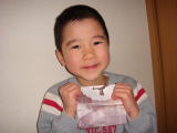 | 風邪だった・・・(平成23年2月2日) 夜中、あまりの喉の痛さに目が覚めた・・・・(汗) 花粉症じゃなくって風邪やわ・・・。 バザー準備はお休みさせてもらって家でゆっくり。 昼からはきーくんとがっつり昼寝。 今日はきーくん、幼稚園で豆まきの日でした。 たくさん豆が食べられて満足だったよう です(笑) |