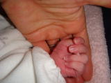 姫ちゃん誕生!(平成23年4月14日)着いて、内診。 子宮口は2センチ。まだまだだろうなと、パパは子供たちを 部屋で寝かしつけ。ママは痛みがあるときは痛いけれど、 助産師さんがずーっと着いてくれていたので(上二人の時は この状態の時はほったらかしでかなり不安だった・・・)ほんと 安心だったよ。 ばあばもまだ暗いのに自転車で駆けつけてくれました。 点滴をしないので、水分をちゃんととってトイレに何度も行くように言われます。 トイレで 痛いのが来たときはひえ〜って感じだけれど、痛くても確実にお産が進んでいるようで 嬉しかったなぁ。 おーちゃんはいつもどおり5時半に起床。きーくんはそれから少しまだ 寝ていたかな。 そしてそのまま朝ごはんの時間。まこと助産院さんのごはんは、 助産師さんの旦那さんの手作りで、体にやさしくてとってもおいしいので、痛みのない ときにペロリと食べた(^^) 子供たちはばあばが駅前に連れて行ってくれて好きなもの を買ってもらったみたい。 朝9時にこれからしばらくお湯に浸かれないだろうし(^^)とお風呂を勧められて、 出産前最後の入浴。時々痛みがきたけれど、お湯の中だとほんとに楽なんだなぁとか、 鏡に映ったお腹を見ながら、もう見納めなんだなぁなんて思いつつお風呂を堪能 しました。 その後昼食(^^) あまり食べ過ぎると分娩最後に気分が悪くなったり するので気をつけて〜と言われ、パパに少し譲りました(笑) 何度も「赤ちゃんまだ産まれへんの?いつ産まれるの?」と聞いてきたおーちゃん、 きーくん。 そりゃ段々退屈になってきて、ばあばや助産師さんに遊んでもらっていた ようです。 今日が木曜で休診日だったのでほんとよかったなぁと思った(^^) 午後になって、陣痛が益々強くなりママが叫びだすときーくんが怖がり出した(汗) 「怖い〜!もう帰る〜!」とばあばの後ろに隠れてしまうきーくん。ばあばがなんとか なだめてくれ続けていました。着いてくれてよかった〜! 始めはふざけモードだった おーちゃんは、ママが必死な感じになるに連れてだんだん冷静になってくれて「何したら いい?」としっかりフォローに回ってくれた〜!! もうとっても暑くてたまらなかったので 「すごく暑いからうちわで扇いで〜!」と頼むと、しっかりうちわ係りを務めてくれました。 とにかく暑くてクラクラする感じ。 あの痛さを忘れていたなんて、人間ってなんて都合が 言いように出来てるんだろうって思った。「こんなにしんどかったっけ?」と何度言った ことか(笑) 今回は、フリースタイル出産だったので、パパを頼っていろいろなスタイル に変換したのだけれど、もうパパもひっかかれつねられ大変だったと思います(笑・・・ お風呂でかなりしみたらしい・・・ごめんね!パパ!) 赤ちゃんが出てくる時は、心配していたきーくんも、おーちゃんもすごく真剣に見守って くれていました。最後はホントしんどくて痛くて「助けて〜」と叫んだママでしたが、 午後4時44分に、みんなに見守られる中無事3140グラムの女の子が誕生しました(^^) (おーちゃんが午前11時1分。きーくんが午後1時11分。驚きのぞろ目兄妹です!) 姫ちゃんが出てきてしばらくママのお腹で抱っこ♪ その間に後産で胎盤が 出てきました。 今回のバースプランで、おーちゃんが「胎盤とへその緒を見たい」と 言っていたのでじっくり観察させてもらいました。おーちゃんはメモを取っていたよ (笑・・・それを真似してきーくんもメモってた) ママもへその緒が脈を打っているのを 触って確かめたいと思っていたので、みんなで触って確かめた〜。 ドクドクと本当に これでつながっていたんだなぁと感じることができました。 拍動がなくなってからパパとおーちゃんときーくんが協力して、へその緒にはさみを 入れました。 ママ一人に助産師さん二人が付いてくれての出産。 分娩誘導とそれにともなう 声掛けやマッサージ、家族のフォローが素晴らしくて、ママは不安になることなく出産に 集中することができました。 幸い他に入院がなかったこと、外来がお休みの日だったことも気持ちに余裕ができて よかった〜。 3人目で15時間。長かったけれど、お産の進み具合を自分で感じること かできて、家族みんなで赤ちゃんを迎えることができて、15時間頑張ってきて 心からよかった〜☆と思えるお産になりました(^^) 幸せです☆ ほんと助産院サイコーです!!! おーちゃんも産後すぐ「まことさんで赤ちゃん産めてよかったね!」と言っていたよ(^^) 帰るときも助産師さんに「ママと赤ちゃんをよろしくお願いします」と言って帰っていった らしく助産師さんがびっくりしていました(笑) 分娩途中は何度も「赤ちゃん産まれたら パパを取られるから、おーちゃんは家出せなあかん」と言っていたけれど、少し成長 したのかな?(^^) |