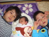 | 初めての土曜日(平成23年4月23日) 今日は姫ちゃんにとって、お兄ちゃんたちがいる初めての土曜日。やっぱり騒々しい のか(汗) 午前中はなかなか寝られず(汗) 午後によく寝ました。 |