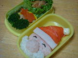 今年最後のお弁当(平成23年12月15日)* 今日のお弁当 * ・ サンタご飯(お弁当畑ふりかけ、カニカマ、キャンディーチーズ) ・ 野菜のお肉巻き(豚肉、ニンジン、ブロッコリー) ・ 高野豆腐(にんじん) ・ ブロッコリー、キウイ 今日はサンタさんにしてみました。もっとひげを長くすれば よかったかなぁと思いつつ。 きーくんのうけはよかった☆ |