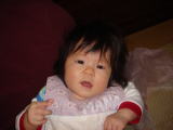 | 落ち着いたのか(平成24年1月11日) あまりまとまって昼寝をしない姫ちゃん。 にいにいたちの冬休みの間はほとんど寝な かったけれど、今日は1時間半も昼寝をしてびっくり! 落ち着いたのかな(笑) |