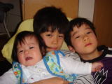 あけましておめでとうございます!(平成24年1月1日) 今年もよろしくお願いいたします! まわりのすべてのことに感謝をして毎日が過ごせます ように☆ 希望をもって日々を過ごしていきたいです。 今年はきーくんがいよいよ一年生!! マイペースで、 人の話を全然聞いていないきーくんなので、おーちゃんの時とまた違った心配が・・・・(^^;) 頑張ってもらいたいわ〜☆ おーちゃんも4年生になります。 難しい年頃になって きましたが、まだまだかわいいところも多々(^^) ちゃんといいところを認めて褒めて いってあげたいです。 ひめちゃんは日々進化の8か月!! あっという間に成長していってるので、ちゃんと記録 をしていかなければ・・・と焦ってます。(母子手帳が真っ白だったりする・・・) 年越しはきーくんはばあばのところにお泊り。 ママは姫ちゃんの寝かしつけで撃沈。 パパとおーちゃんはちゃんと年越しそばを食べてカウントダウンしたようです。二人が 上に上がってくる音で目が覚めて、歯磨きをしたママです(^^;) 朝は7時に起床して1階に下り、ばあばが用意してくれたお雑煮とおせち、ネットで 注文したおせちをみんなでいただきました。 10時ごろから近所の大石神社へ歩いて初詣へ。 あとは夕方までのんびりしました。 おーちゃんときーくんは、パパにお年玉代わりに買ってもらったビーダマンのおもちゃで ずーっと遊んでたよ(^^;) 夜はしんちゃんファミリーも来て、みんなで一緒に夜ごはん(焼肉)を食べました♪ しんちゃんが帰るときに一緒に連れていってもらい、お泊りをしたきーくんです。 |