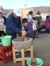 小学校でお餅つき(平成24年1月8日)パパは車検の見積もりに行くので、パパを家に残して 8時半過ぎに4人で学校に向かいました 毎年年明け早々に行われるお餅つき。 毎年参加しています。 兄弟も参加できるのがうれしい♪ 去年までは手を添えてもらっていたおーちゃんは、今年一人で つけるようになっていました。成長だね(^^) きーくんは大人と一緒に。 つきたてのおもちを二人はきな粉で おいしくいただきました。おかわり自由なので、おかわりをしてた よ♪ ママも一つだけぜんざいでいただいた〜(^^) 甘くて あたたくてほっこり♪ 食べ終わってからはお友達と学校で遊ぶというので、お餅つきが 終わって帰る時間になったら帰っておいでと言って(高学年が あるので12時ぐらいまでありました)姫ちゃんと一足先に 帰ってきました。 お昼に一旦二人で家に帰ってきたおーちゃんときーくん。 おーちゃんは友達と遊ぶ約束 したし!とまたすぐ家を出て行った(^^;) おもちでおなかが膨れてお昼ご飯も食べず です。 きーくんは、パパとばあばと平和堂へ。 パパが見守りケータイを購入しました。 |