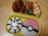 今日のお弁当(平成24年1月17日)うろ覚えでピカチュウを作ったら、悲しいくらい似てない・・・。 * 今日のお弁当 * ・ ポケモンおにぎり(デコふりの赤、チーズ、のり、にんじん) ・ 煮込みハンバーグ ・ きんぴらごぼう? ・ 青菜の炒め物? (副菜なんだったか忘れた〜・・・)、りんご |