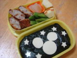 今日のお弁当(平成24年1月26日)今日のお弁当は手抜きミッキーシルエット弁当(笑) こんなんでも喜んでくれるきーくん。かわいいわ〜(笑) |