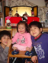 初節句(平成24年3月3日)今日は姫ちゃんの初節句です。 じいじとばあばがひな人形を買ってくれたので、とっても素敵な ものが姫ちゃんのもとにやってきました(^^) 我が家は飾るスペースがないので、おーちゃんの机に飾られ たよ(笑) じいじばあばありがとう〜☆ 夜ご飯はじいじばあばも一緒にちらし寿司とホルモン焼き (笑・・大人用) 来年は姫ちゃんも同じものを食べられるかな。 おーちゃんはまぐろたんまり、きーくんはいくらたんまりのちらし 寿司をおいしそうにたいらげていました(^^) 食後にはばあばの買ってきてくれたケーキまでちゃんと食べた わ〜(笑) 姫ちゃんがすくすく成長して、素敵なレディーになってくれるかな?☆ |