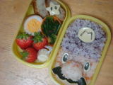 今日のお弁当(平成24年3月8日)きーくんのリクエストは、最後のお弁当までずーっとマリオ です(汗) マリオ、ママにはレベルが高いんだよ・・・(汗) ドアップマリオということでごまかしました(笑) 前回赤を切らしていると言っていたのに、またケチャップを 買うのを忘れてて・・・。ゆかりごはんで作りました。 * 今日のお弁当 * ・ マリオごはん(ゆかり、鮭フレーク、スライスチーズ、のり) ・ コロッケ(ミンチ、玉ねぎ、じゃがいも) ・ ゆで卵のポン酢風味 ・ ホウレンソウの和え物 ・ いちご、キャンディーチーズ 今日おーちゃんが、英語の本たくさん読んだらポイントちょうだい〜。そしてたまったら 3DS買ってや〜というので、二人で1500ポイントたまったら買ってあげることになり ました。 張り切って読みだしたけど、どうなるかな・・・。3日坊主にならないといいけど☆ |