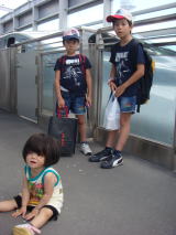 | 一期の会(平成24年8月11日) 朝は、地蔵盆の飾り付けに出た子供たち。 お昼ご飯を食べて、家を出ました。 1時からこどもみらいかんで一期の会。英語であそぶ会です。なのでパパに送って もらって(パパはバトスピへ)参加してきました。 一歩部屋に入ると、ここ日本です よね??という感覚になるくらい、先に来ていた子供たちが英語のみで会話をして いる〜!!まさしくぺらぺら。うちはほんと場違い(笑) おーちゃんは第一に英語力 のなさもだけれど、年齢的なものもあってちょっと難しかったかな。 でも、なおぱぱさん が持ってきてくださった英語ボードゲームなどにちょこっと参加したりして、頑張ろうとは してたのかな。きーくんはなおぱぱさんが英語で相手してくれるボードゲームにはまり、 なつきまくりで、始終楽しんでたよ。英語もきーくんなりに頑張って、できるだけ英語と いう状況だったと思います。 ママは、保護者席で他のママたちの話を耳を大きくして 聞いていました〜。英語話ができてむちゃむちゃ楽しく有意義な時間になりました(^^) 合間に、コットンさんが娘さんと作ってきてくれたピニャータの登場!!本物だ〜!と すごく感激しました☆ だってDWEのビデオでしかみたことないし!子供たちもすごく くいついてた〜!! 姫ちゃんもキャー〜とかいいながら突進してたし(笑) 本当に名残惜しかったのですが、パパが迎えに来たので、みなさんより先においとま しました。片づけもせず、申し訳ありませんでしたm(--)m コットンさん、誘っていただいて本当にありがとうございました!!! 姫ちゃん、やっぱりここでも「しーし」と言って、トイレ成功。なぜ外ではできる???? |