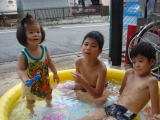 まったりと(平成24年8月10日)午前中は宿題。 きーくんはおーちゃんが宿題をしている間、 英語の本とか、ぞろりとか読書してました。 ビニールプールの用意をしておいて、昼から水浴び。 3人でキチキチプールで遊んでたよ(^^) |