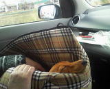 | きょうは、ゆきやんが会社休みだったのでゆきやんとお義父さんとで梅小路公園に散歩に出かけました。公園では手作りの出店が沢山出ており大勢の人が来ていました。いつものとおり怖かったので手提げかばんの中に入ってのお散歩でとても楽ちんでした。帰った後はいつものとおりお昼ねです。 | ![]() |