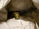 | 今日は、初めて一人で留守番 をしました。 でも、ゲージの中を、 めちゃくちゃにして、 まえちゃんに貰った服にも うんちをしてしまいました。 明日も一人で留守番します。 どうしようかな? 私の新しい寝床を見つけたよ。 まえちゃんの寝床を 奪いました。 |