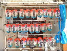 | 当日の朝は、地域のお年寄りが中心になって、 準備に余念がありません。 子供の名前を入れた提灯をずらっと並べて、 おまつりします。 どこのお地蔵さんでないといけないという 決まりはないようです。 近所のいつも見るお地蔵さんにお供えをして、 子供たちの提灯を奉納して、成長と安全を祈願します。 |