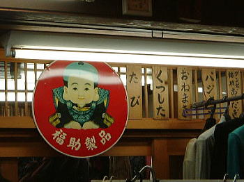 それから、例の「餅つきパフォーマンス」をいつもやっている和菓子屋さんの横の通りに 入ります。 ここから、餅飯殿(もちいど)センター街〜下御門商店街と続きます。 見上げると、アーケードもなんだか懐かしい感じ・・ 昔からある商店街らしく、並んでいるお店も古い店構えのところが多いです。 |