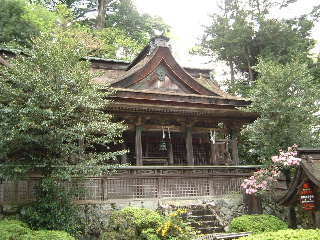 不思議な静けさに満ちた空間が そこに広がっていました。 桃山時代の建築だという本殿の苔むした様も、 花を散らす枝垂れ桜も、 「静謐」という言葉がよく似合う りっぱな神社でした。 |