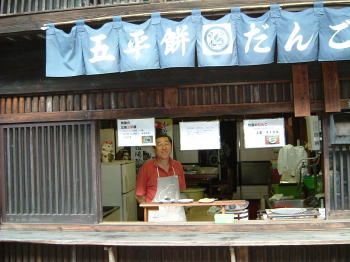 さて、旅といえば旅先の美味しいものを食べるのが楽しみの私とだんなさん、 まずは五平餅、そして信州蕎麦・・ 宿の夕飯までにこれをクリアしようとしたのですが・・ |