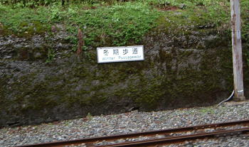 そして、その黒薙温泉は、黒薙駅の近く、この石の段々を上がっていくとあるそうです。 立札に「600m先」と書かれていましたが、山道の600m・・案内のパンフレットには「徒歩20分、峡谷最古の露天風呂」と書いていました。 そこが宇奈月温泉の源泉だそうですが、行ってみたいような、最初から諦めてしまうような・・・^^; |