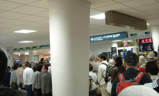 ![]() 昨日も、そして今朝のバスでも、添乗員さんが くどいほどアルペンルートの移動について説明しました。 「もしも、はぐれたら、元のところへ戻らないでください。 ひたすら前へ!立山へ向かって進んでください!」 子供じゃあるまいし、迷うかあ〜??と思いましたが アルペンルートスタート地点・扇沢のトロリーバス乗り場、 朝の通勤電車の駅かと思うほどの人でした・・ (待ってる間に見つけました) |