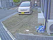 全体にモルタル仕上げの駐車場にしました。幼い子供さんがいらっしゃるので、夏にはプール遊びしやすくなり、楽しみが増えました。