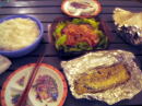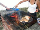 熾きが出来た。さぉ焼き始めです。昨晩から漬け込んだ鶏肉・牛肉を網で