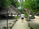 ブースが決まったので薪集めを兼ねて島めぐり。端っこまでは歩いても5分くらいかなぁ・・・。乾いたヤシの実の皮がよく燃えるらしい。確かに油になるもんねっ。無人島でも暮せそうやね。東京ど真ん中生まれとは思えへんなぁとただただ感心してた哲ちゃんでした。両手いっぱいに集めてきた薪で火をおこして熾きを作ります。