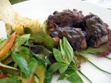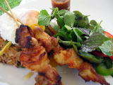 哲ちゃんナシゴレン、私はわけのわかんない肉料理を頼んでしまって(泣)とビールを注文