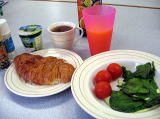 ほうれん草エッグ、トマト、パン、ヨーグルト、オレンジジュース、紅茶といった感じ。もちろん美味しく頂けました。