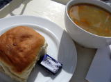スープセットを注文。スープはスコットランド名物のscotch brothを選んだ。野菜と大麦、羊の肉の入った濃厚なスープでした。臭みもなく美味しかったです。