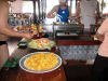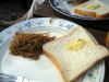 夫が戻ってきたのが7:44でそのからセンターデッキに行ったら「あーやっぱりない・・・」朝食は悲しいくらいに売り切れ状態です。残ってるのは焼きそばとパンのみです。仕方なく食べ始めるとスタッフが追加にハムと玉子焼きを持ってきてくれた。夫はマジ大喜びで玉子焼きをほおばる(笑)