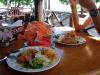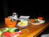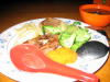 今夜のメニューは羊のTボーンステーキ、フライドポイト、ブロッコリーの炒め物、青梗菜の炒め物、チキンナゲット、サラダ、カツオのステーキ、デザートにメロンとパイナップル・・・あとよくわかんない豆腐のスープです。3日目にしてはずれの日です。まずくはないがどれも美味しくないなぁ・・風邪はマシに。