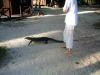 朝食後部屋に戻る途中で例のオオトカゲに出会いました。夫は必死になって一緒に写真を撮ろうと私に指示。