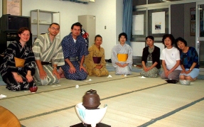 | Martin's sister and her friend visited Meijiike Junior High School. We welcomed them. We introduced “tea-ceremony”and “flower arrangement” to them. We enjoyed them together. They tried “yukata”. They looked very good in “yukata”, but Martin's yukata was short. I don't think we will have a chance to meet each other in the future. But I hope we will never forget each other and this day. Have a nice trip. I hope you have a safe journey back to Canada. |