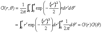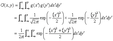 Step 3: 得られた実現値を下記のように、もとの直交座標に変換すれば独立な2個の正規性乱数を得る。