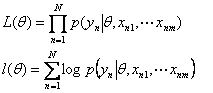 が互いに独立な分布であることを考慮すれば、尤度および対数尤度はそれぞれ
