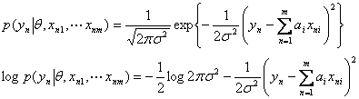 のガウス分布としたので、尤度関数、対数尤度関数の確率密度は