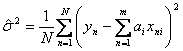 を最小にすればよいことになります。すなわち前節で述べたように最小自乗法そのものとなります。