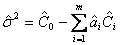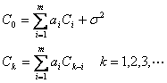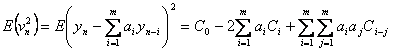 この方程式を解けば容易にAR係数を求めることができます。また1番目の式に求めた定値を代入すると入力であるガウス型白色雑音の分散の推定値