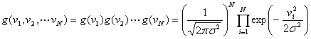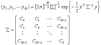 の統計モデルは白色雑音が完全に独立な時系列であるので、その確率密度関数は