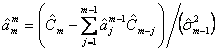 を決めればよいことになりますが、次数が大きくなるにつれて方程式をいちいち求めていくのはめんどうです。レビンソンのアルゴリズム(Levinson’s Algorithm)ではこれまでの計算を逐次的に効率的に解く方法です。このアルゴリズムを最後に示します。