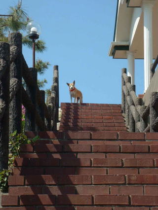急な階段の方、松をたくさん切り、今は少しずつ花壇に変わっています。