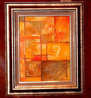 黄色やオレンジの美しい色合いの絵、リビングに飾りました。