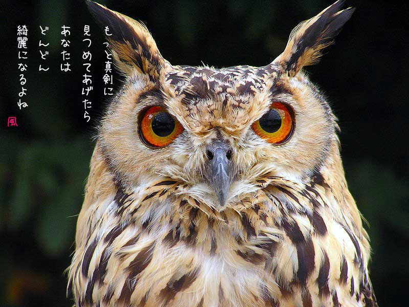 鳥も人も同じで 正面向いて 真剣に 見つめてあげたら それに答えようと きちんとした目で返してくれます その 時の表情は今まで見たことが無いほど 綺麗です・・・ やまびこの法則ですね