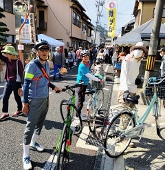 少し見学したが人出が多いいのでなかなか抜け出せず、脇道の細い路地を走り、伊部地区は窯元が多く、登り窯の横をすり抜けたり、行き止まりがあったりで路地走りの冒険は自転車旅の魅力です。楽しかった!「大阪屋」には行列が!
