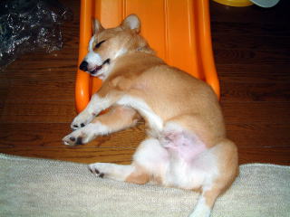 平成17年4月末、我が家に新しい家族がまた一匹増えました。またまたこのかわいさと「オス」ということもあり父親が「一目ぼれ」で購入。現在生後6ヶ月が過ぎ、体重も9.1Kgと上の写真が嘘のようです。食欲も旺盛ですが、出てくるもの・・・?もすごい量です。トイレは覚えたようですが、量が多すぎてシートからはみ出ます。