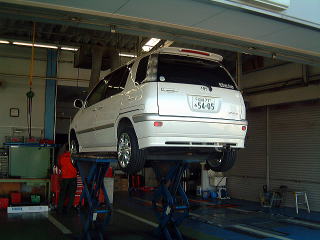なんと、ダウンサスに付け換えた影響とダンパーの経たりもあり最低地上高がわずか数ミリ足りず・・・。本来は駄目なのですがオマケということで。車検時までには何とかしま〜す・・・(爆)。