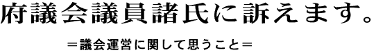 いよいよ9月府議会も終盤に入りましたが、連日のご奮闘に敬意を表します。